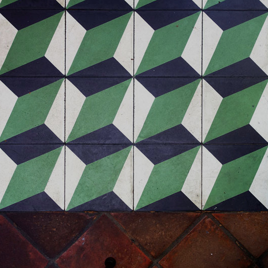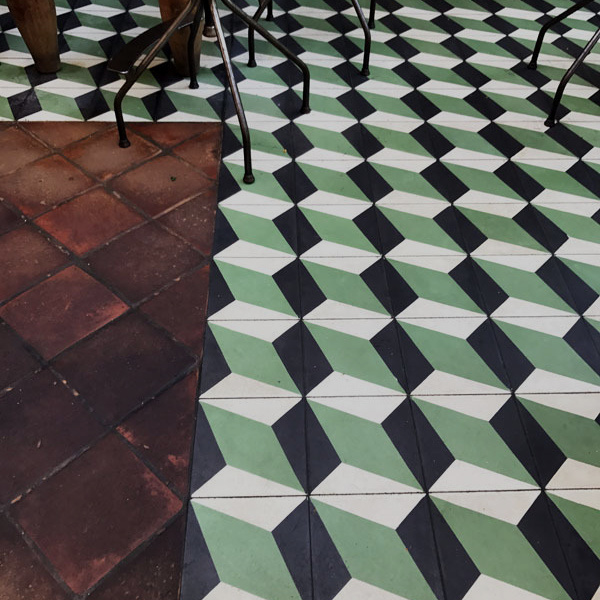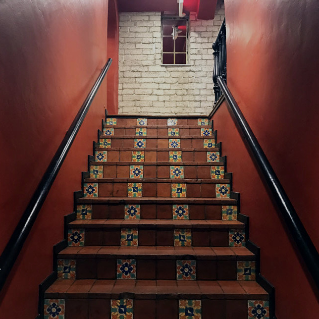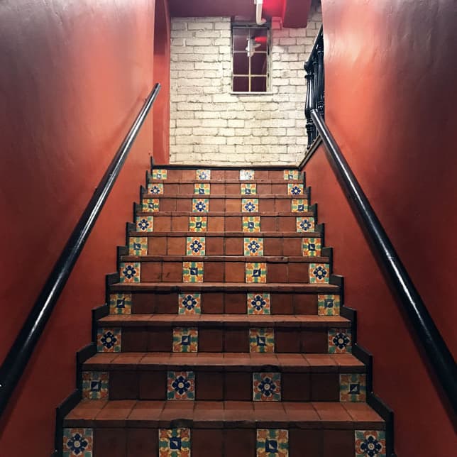 トイレに向かう階段にはメキシコタイルが貼られていた。