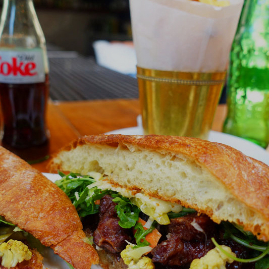 カウンターの後ろには10x20cmのなんの変哲も無い白ブライトのタイルが貼られているが、ロサンゼルスで見るとなぜかカッコ良くみえる。