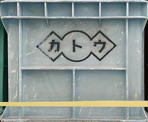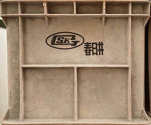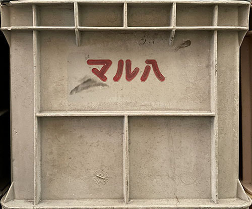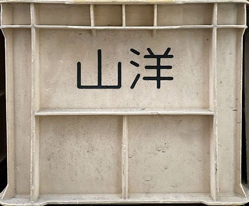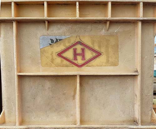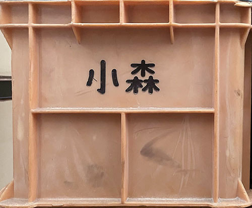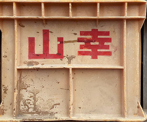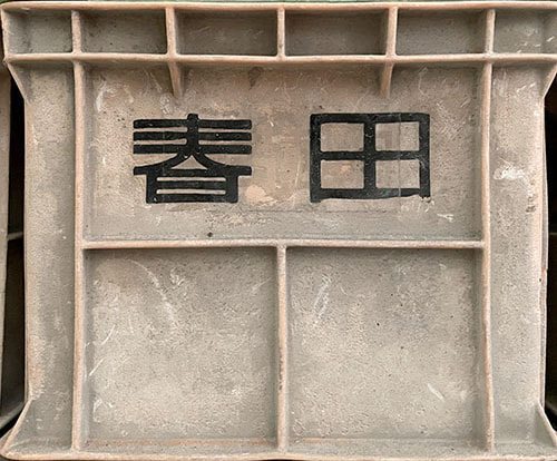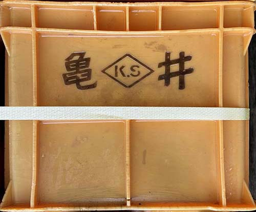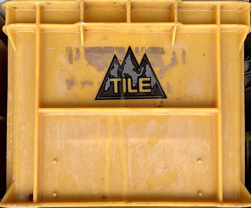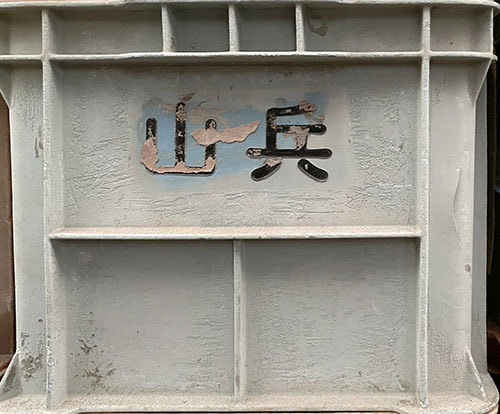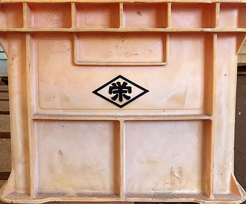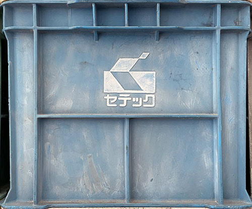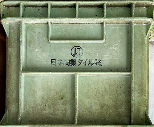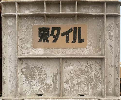 25cmx29cmx41cm の規格サイズで統一されていたのですが、現在はこのサイズのコンテナボックスは作られていないようで、現在では工場毎に違うサイズのコンテナボックスが使用されるようになっています。私がタイル業界に入ってからこの規格サイズのタイル箱を新しく購入した工場を見た記憶がないので、ほとんどが40年ほど前に作られたコンテナボックスだと思います。