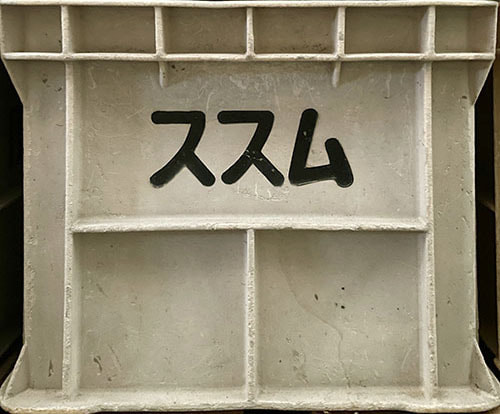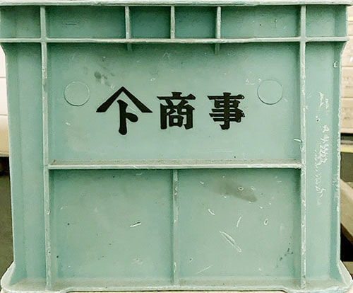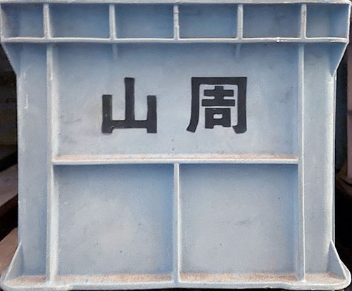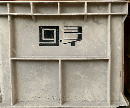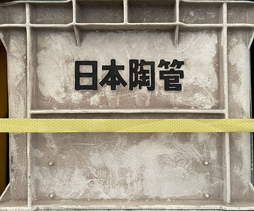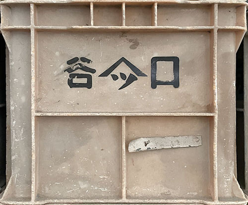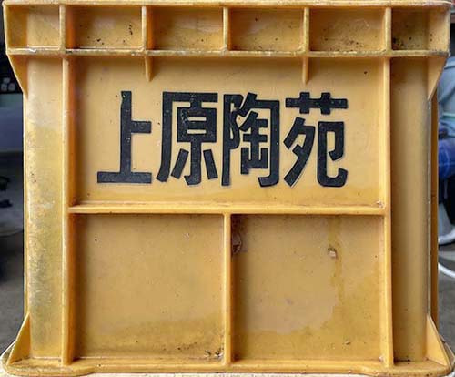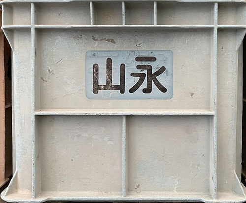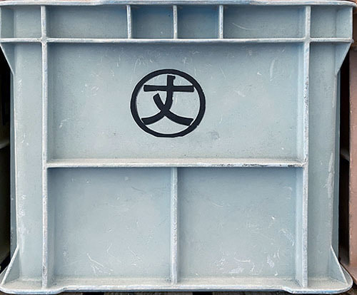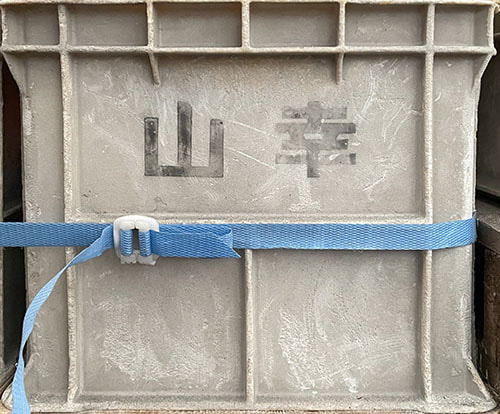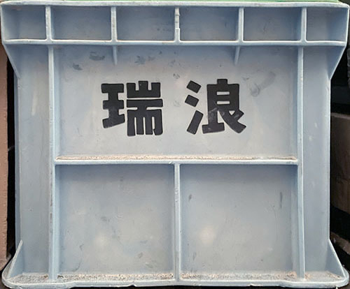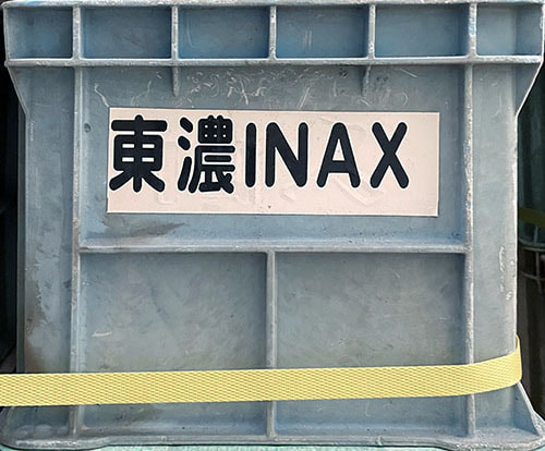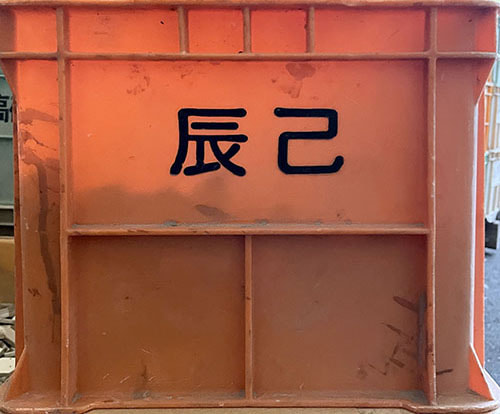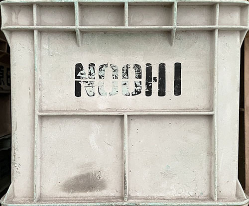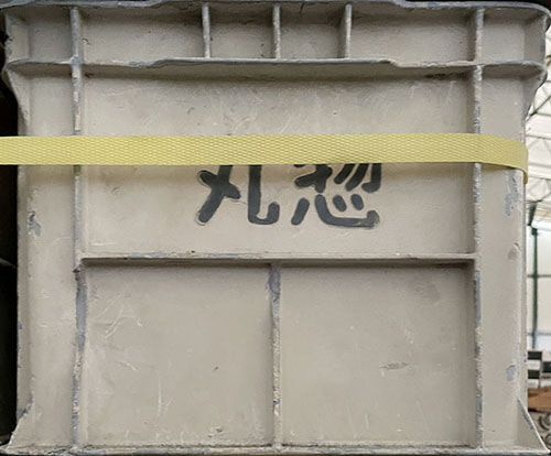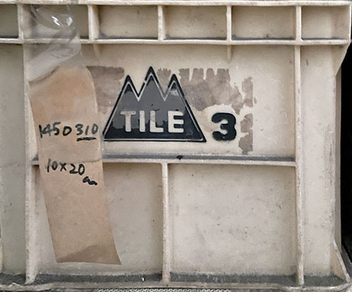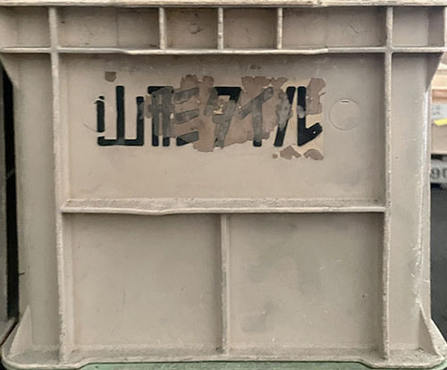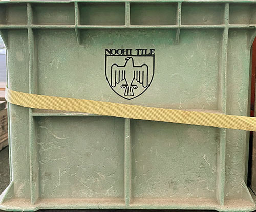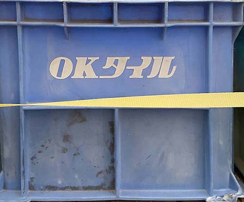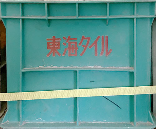 工場で生産されたタイルが、ユニット加工や箱詰めをされる前に一旦入れておく為のコンテナボックスの事です。