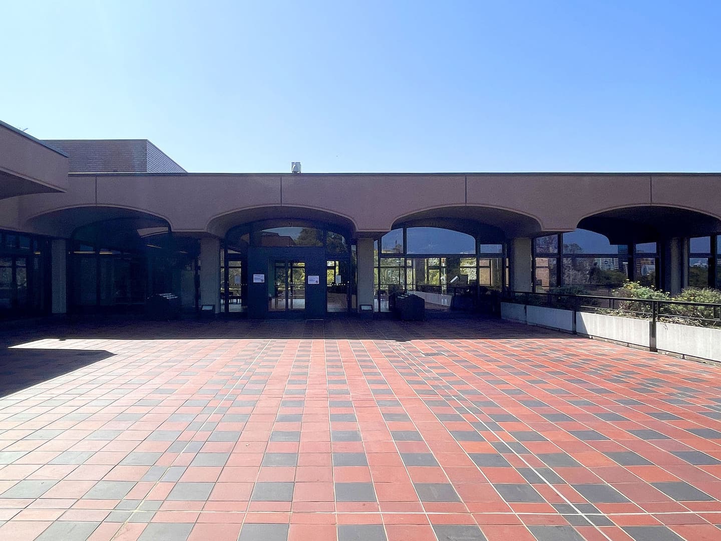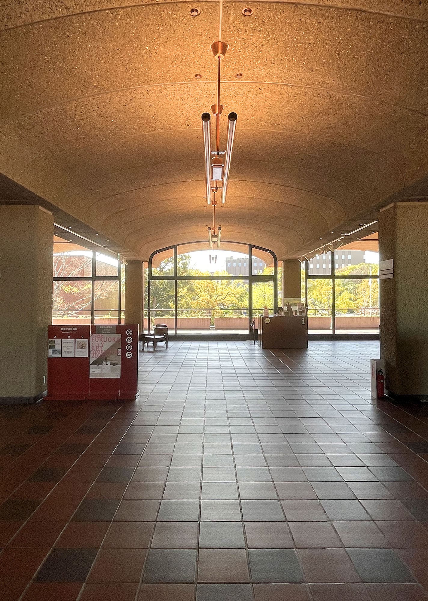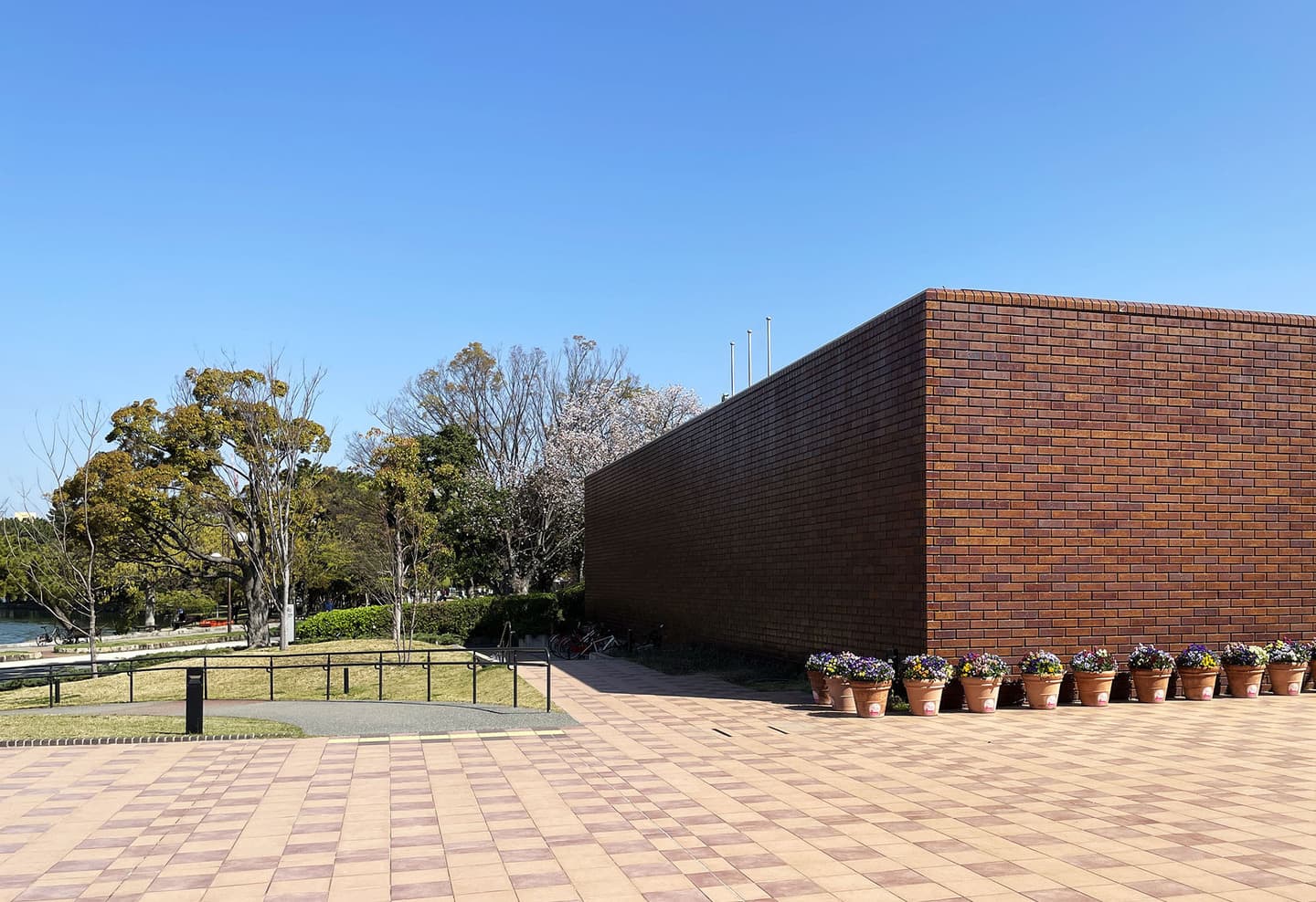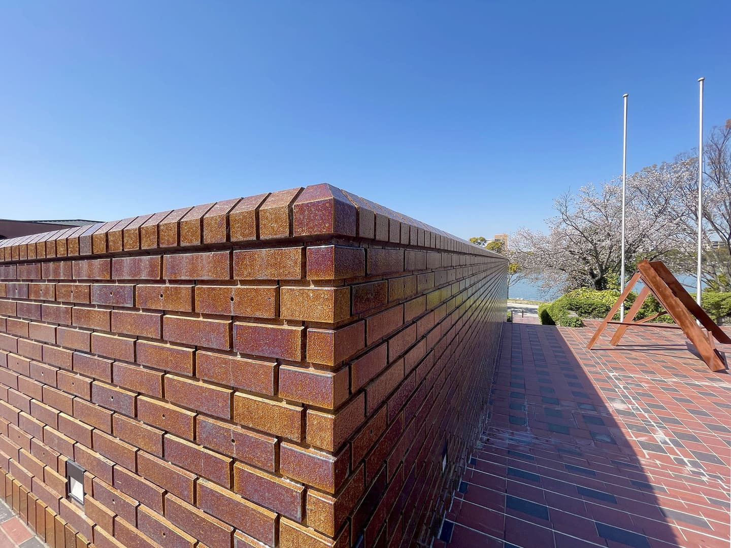 綺麗な桜を見ながら大濠公園を歩いていると赤茶色の建物が見えてくる。