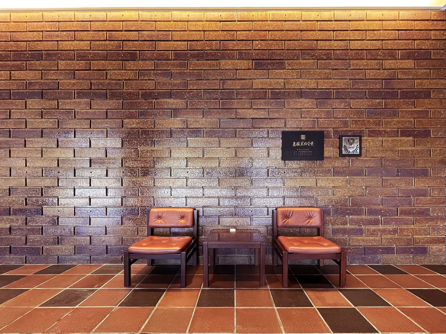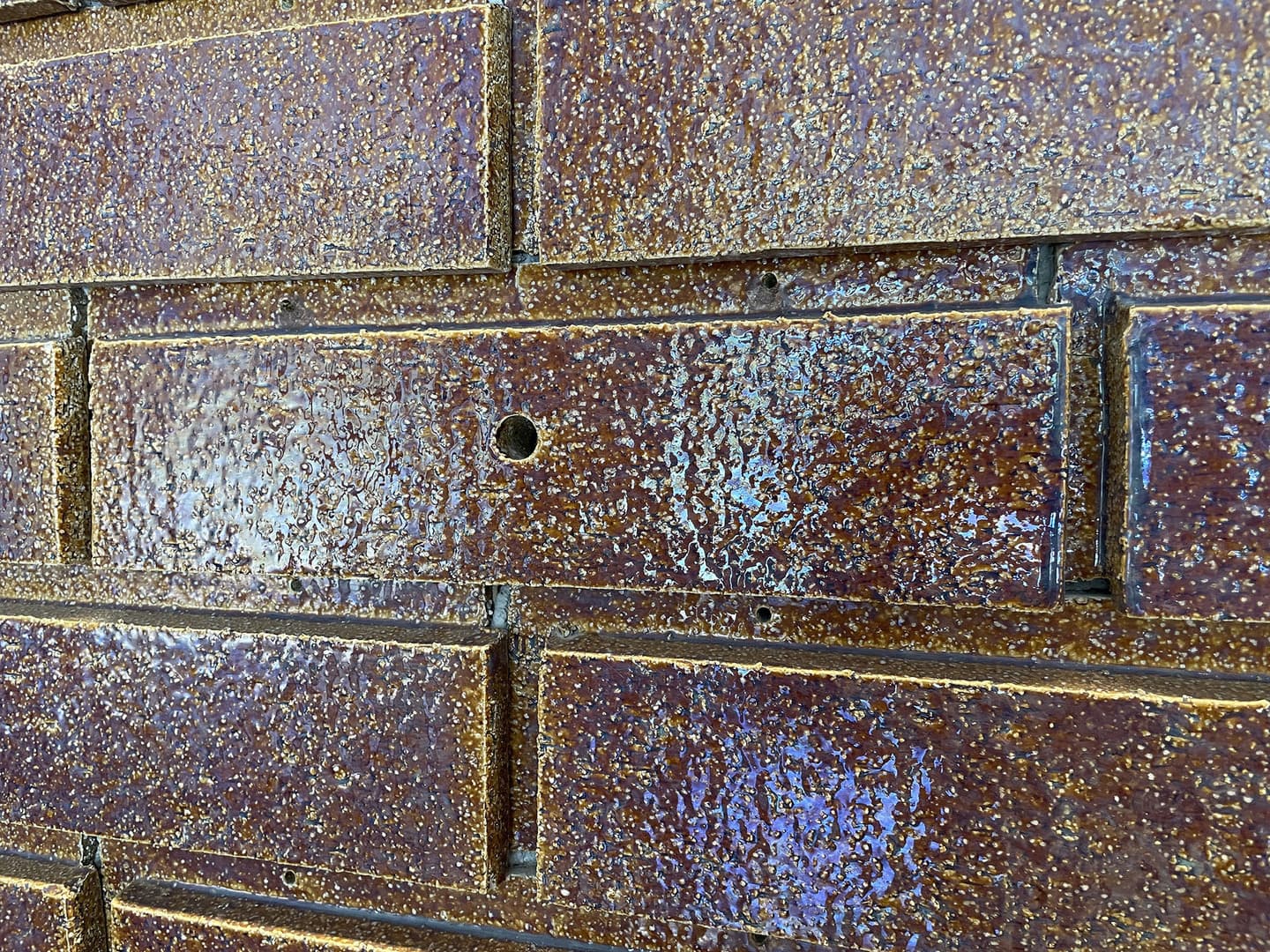 アメ色の釉薬が施されたタイルは、透明感と重厚感を兼ね備え、