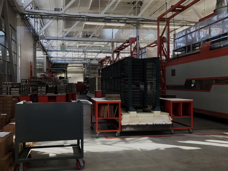 お店に入ると、正面にタイルの工場が、しかも全てガラス張り。