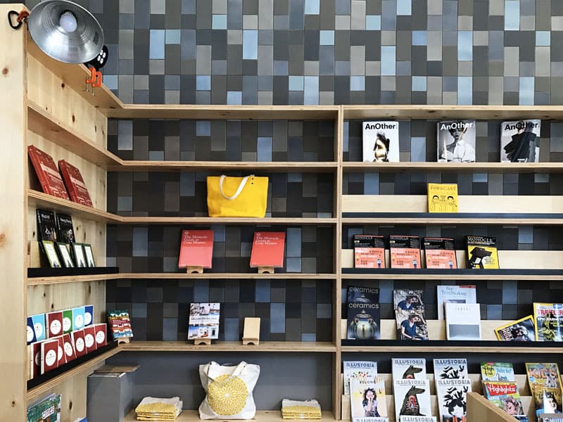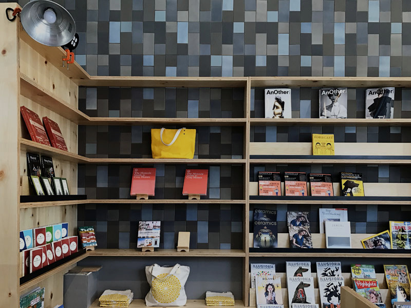 入口の左側にはブックストア。焼き物の本や写真集、デザイン書籍などが売られている。
