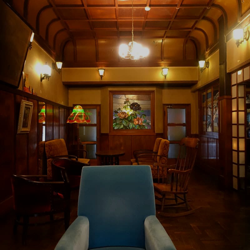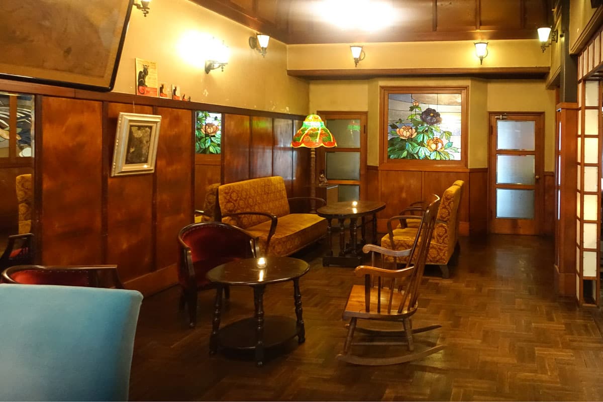 きんせ旅館の中にはカフェがあり、宿泊客でなくても中を見ることができる。