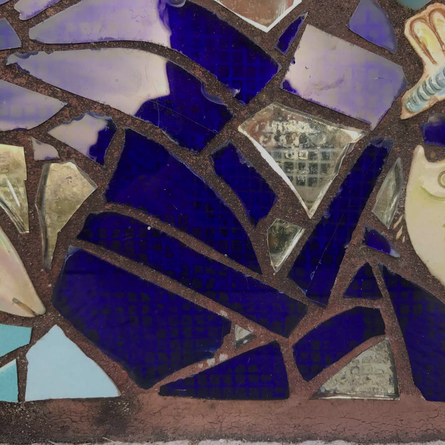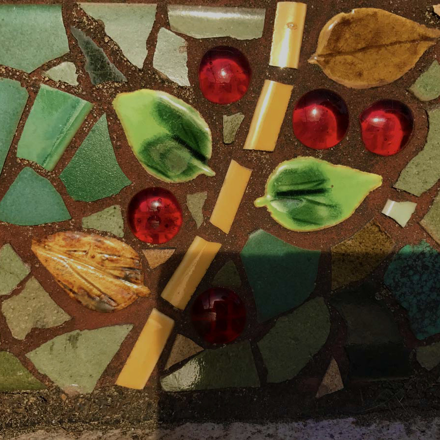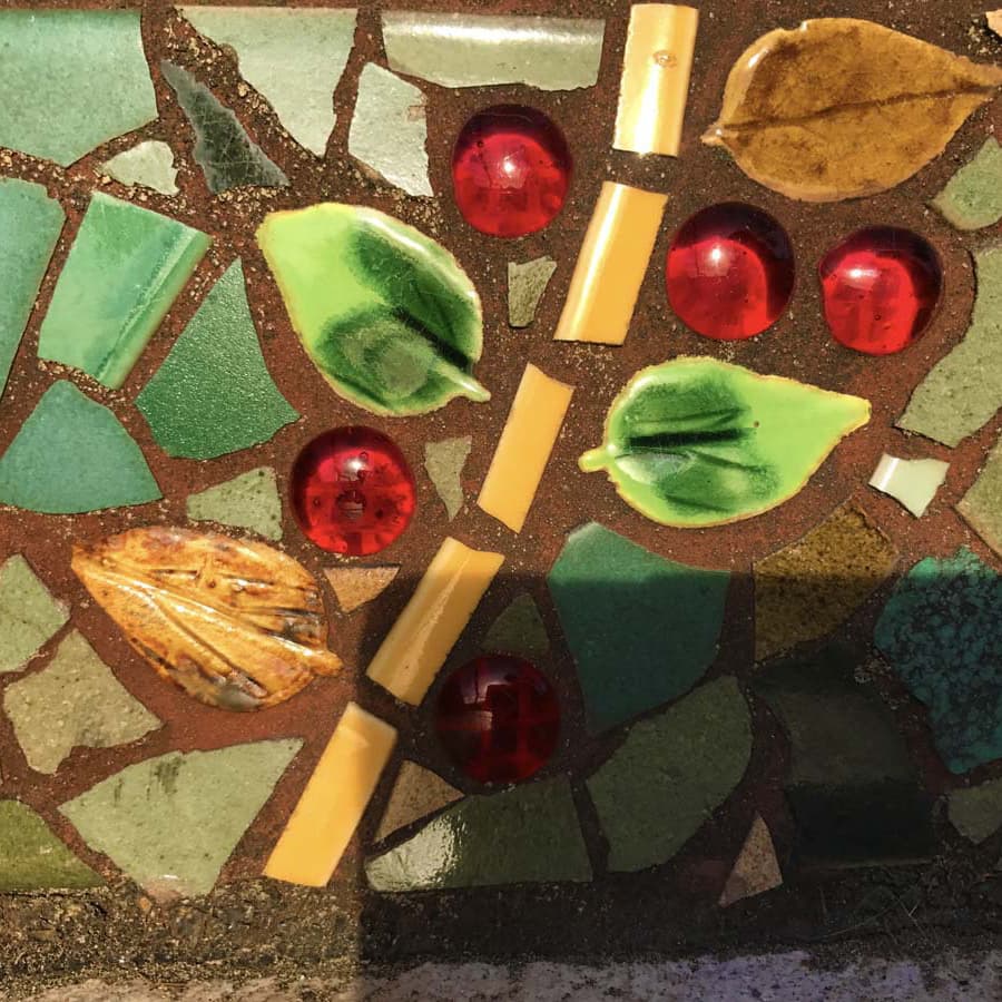 階段の蹴上げ部分にタイルを使ったモザイクアートが貼られています。
