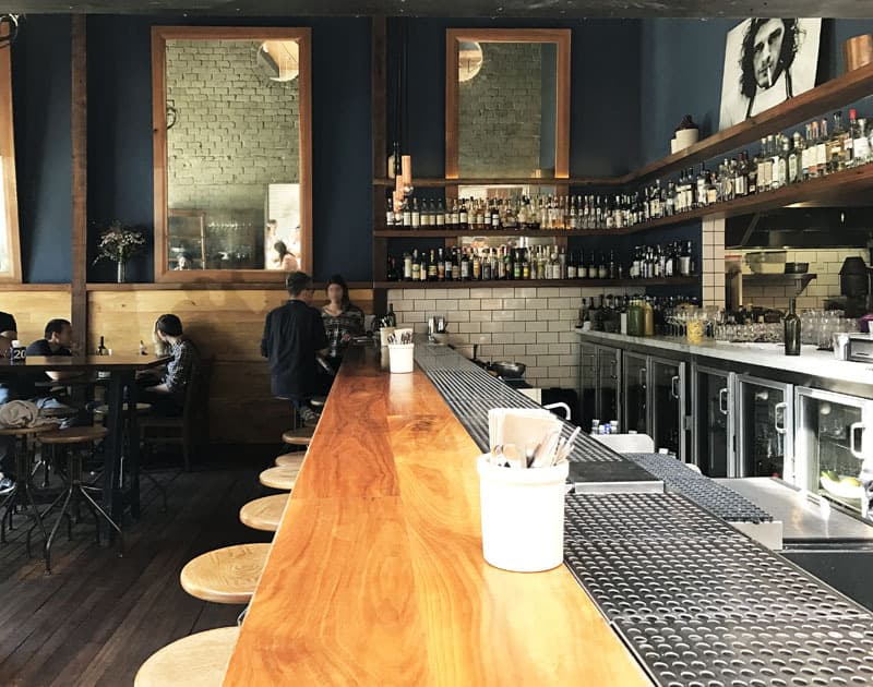 カウンターの後ろには10x20cmのなんの変哲も無い白ブライトのタイルが貼られているが、ロサンゼルスで見るとなぜかカッコ良くみえる。