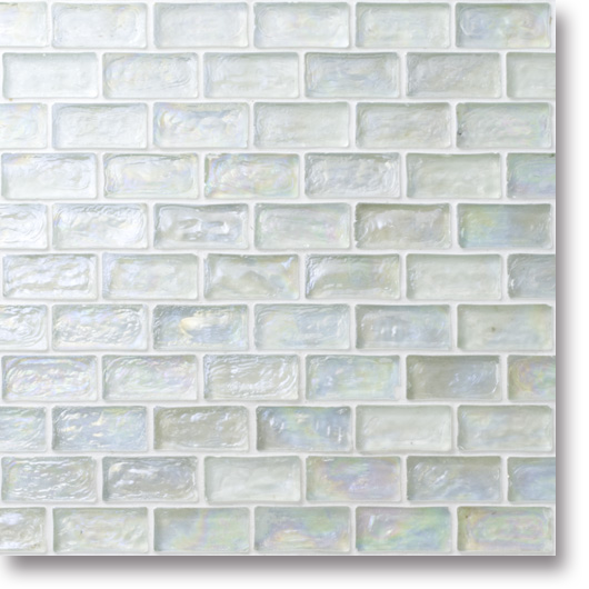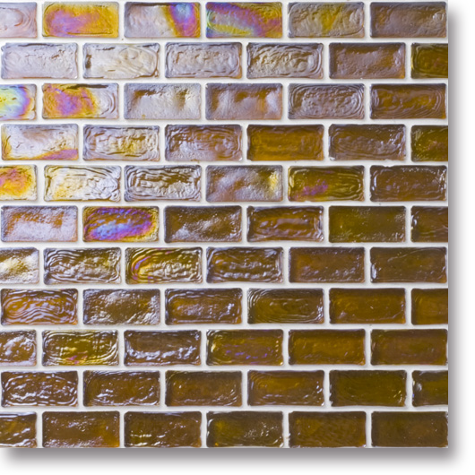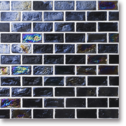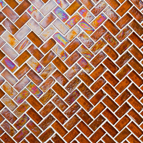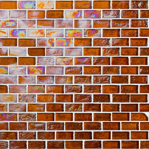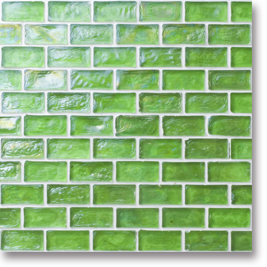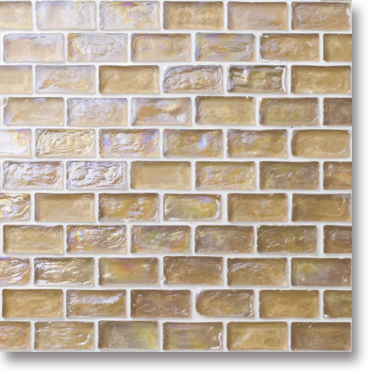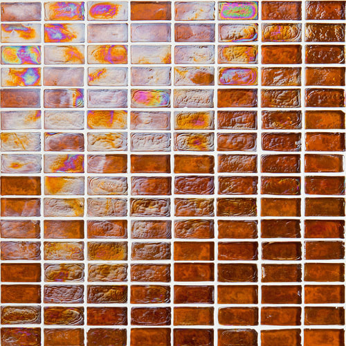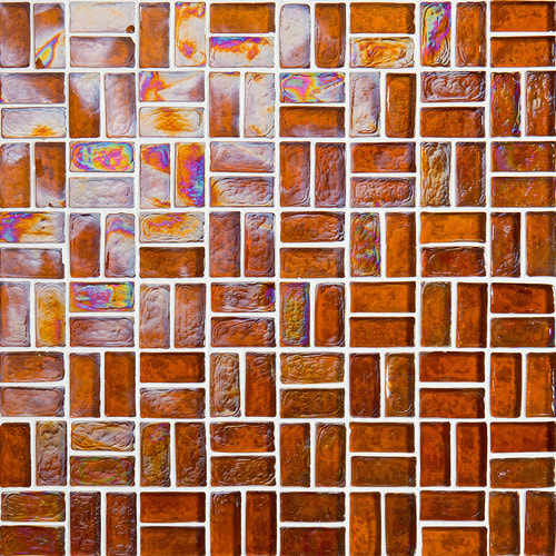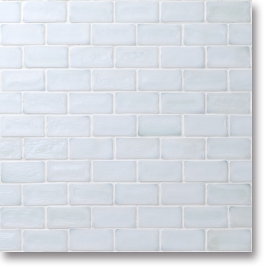 アンティークレンガのような歪んだエッジとぽってりとした厚みが、ノスタルジーを感じさせるタイル。ガラスモザイクでは珍しい長方形が特徴です。透明度の高いビビッドカラーから落ち着いた飴色まで全7色を展開。波紋のようなうねりや、つややかな色の変化が美しく、存在感のある壁面を演出します。