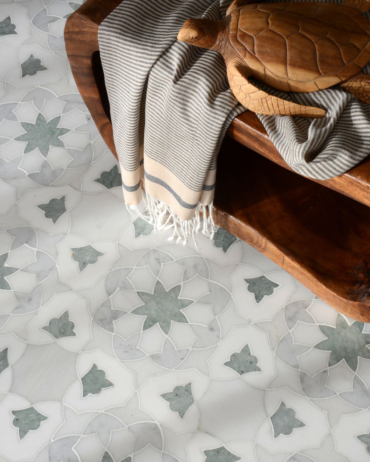 モザイクデザインの美しさを生涯にわたり保たれるよう、熟練の職人による手作業で作られています。それぞれのタイルは、角をとったり、磨かれることにより、絶妙な色合いのバリエーションや独特のテクスチャーを表現します。限りないデザインの可能性や、色味を作り出すことができ、お客様だけのカスタムデザインを作成することも可能です。